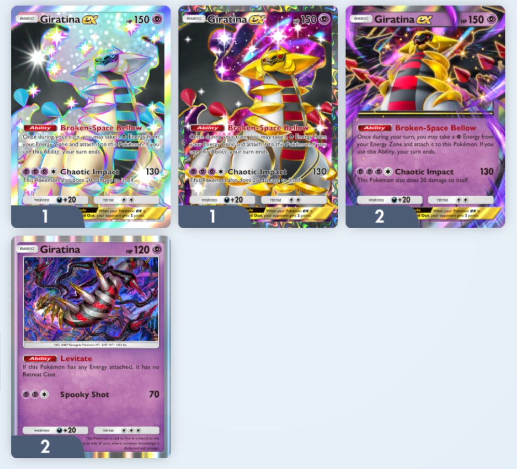 What the fuck am I supposed to do with all these GiratinasI have the regular and shiny versions of the same card now