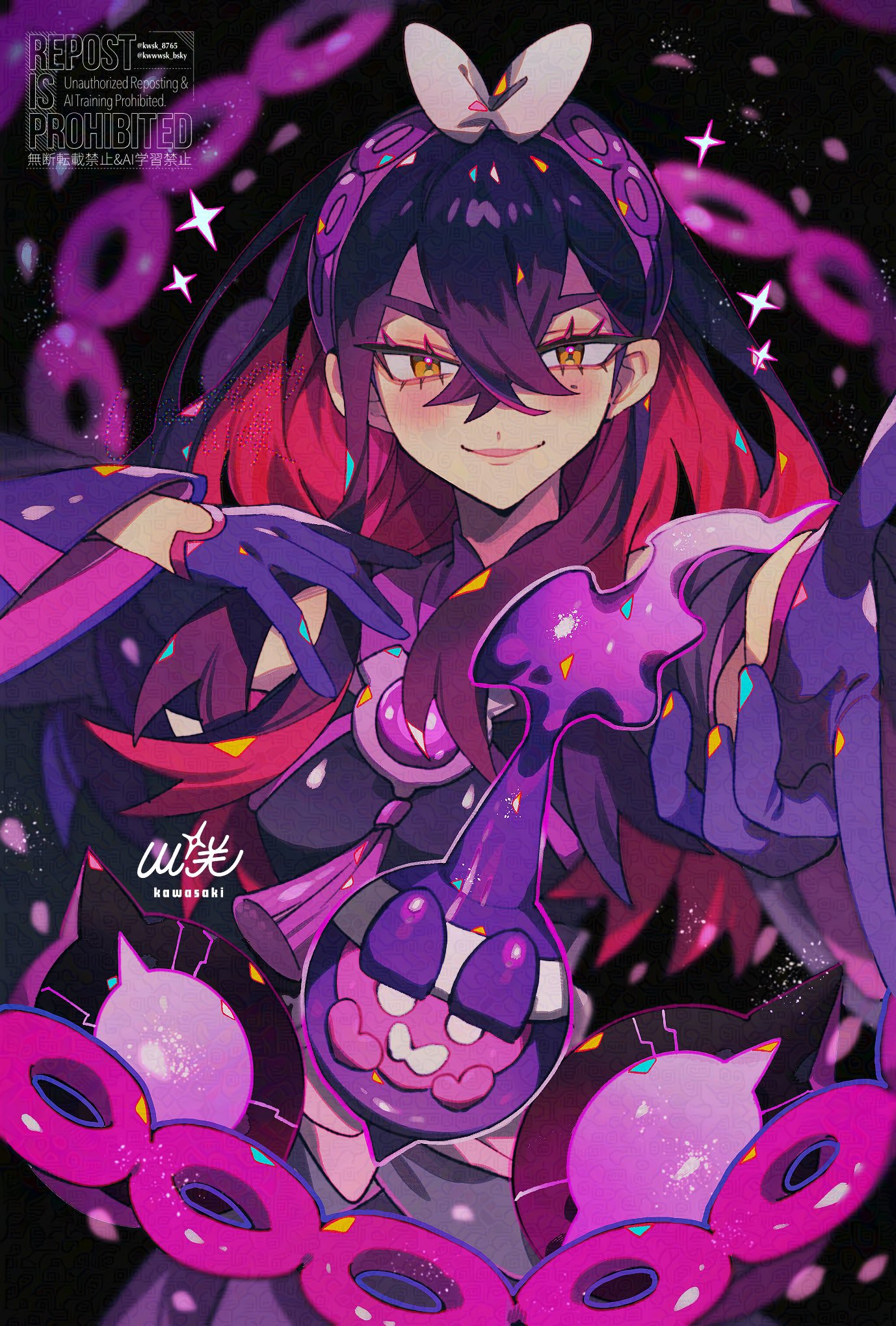 Carmine and Akari and Lucas and Pecharunt