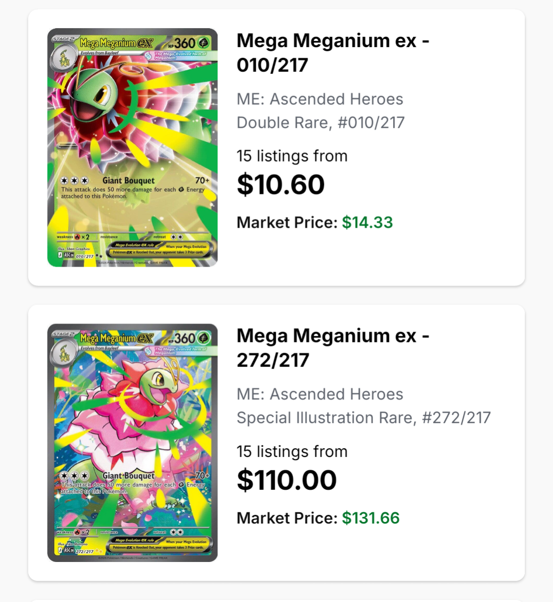 >>58897678Ascended Heroes' release is botched and there's no booster bundle or etb still. The prices for EVERYTHING in this set is still gigafucked. Should have just delayed the whole set. Plus>25-30 on a card with Pikachu Tax50 minimum until the sneakerheads all leave (so never)