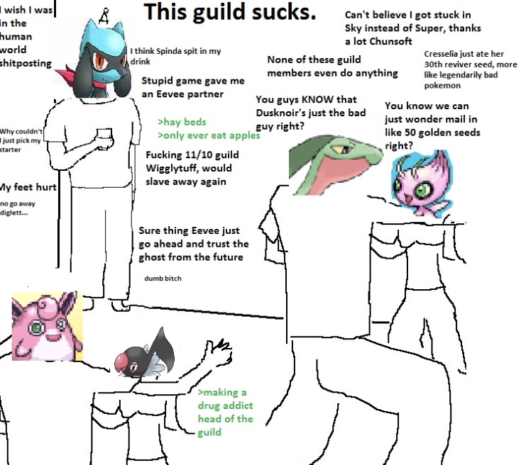 Just give me a new fucking Mystery Dungeon. I'm tired of them just remaking them. I want new gen pokemon and new towns.