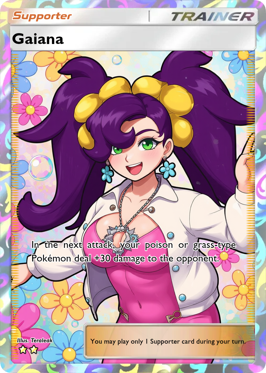Would she be the mother, a trainer or a leader? Could she be a Grass or Poison type? What colors could her eyes, hair, skin and clothes be?