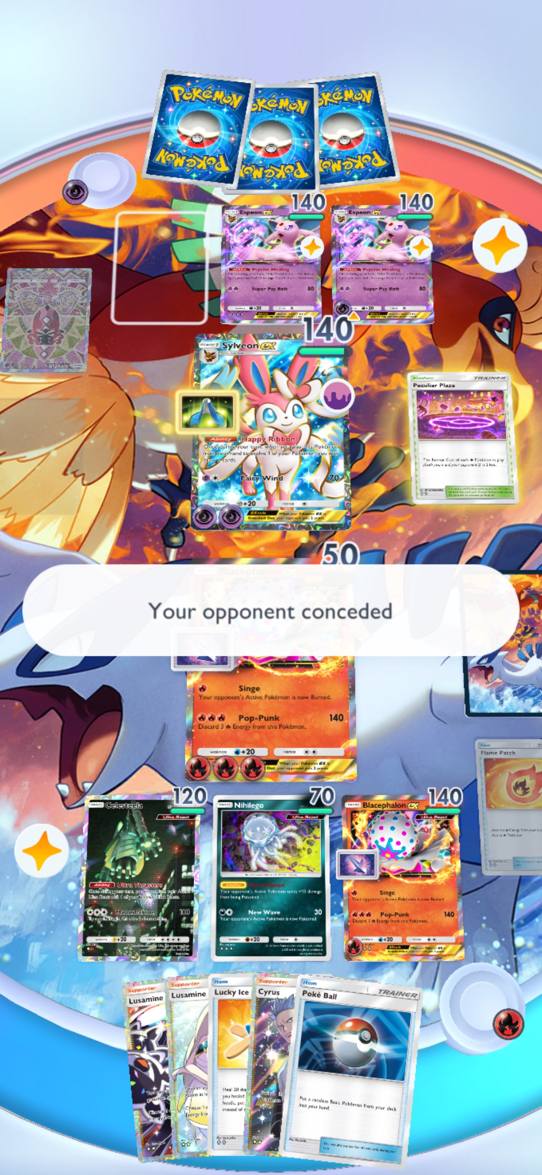 At least it wasn't Poncho. Anyone have a Peculiar Plaza and/or a popsicle to trade? My luck for trainers/stadiums/items has been shit. Not a single copy of either and I'm approaching 300 pack points.4018498134728310