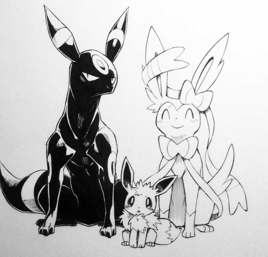 >>58904104Cut family photo of a mother, father and child. (Mother Umbreon) (Father Sylveon) (Adopted Child from Previous Marriage Eevee)