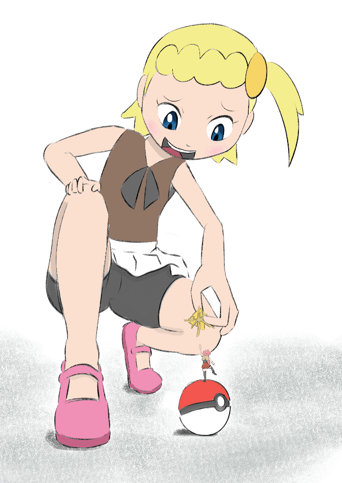 >>58904626>minimized Serena wants to challenge the electric gym>at the entrance she gets spotted by the gym leader’s younger sister>in a few steps, each shaking the ground under Serena’s feet, the girl makes it to her, forcing the tiny trainer to crane her neck up to look at her>undeterred, she states that she came here to fight for the badge>Bonnie erupts with laughter and squats down to pat Serena on the head with one finger>Serena clearly annoyed repeats her request trying to be as intimidating as a pocket-sized dolly could be>”Well i think it’s a big achievement you made it all the way here without being steped on, so I think I might give you the badge you want”>Bonnie takes the medal out of her pocket and lowers it down to Serena >“take it”>mini girl reaches her hand out for the badge only to have it lifted out of reach last second>”come on, just grab it” taunts the “little” girl, lowering the badge down>again Serena goes to grab it only to have it taken away >”what’s the matter? I told you you can take it” Bonnie laughs, waving the badge around and watching Serena jump up and run around futilely trying to reach it>”you know? I think you didn’t really want the badge after all” she said rising up to her full height and putting the badge back in her pocket>”Maybe come back when you’re taller” Bonnie sticked out her tongue and with a light kick sent Serena flying out of the door