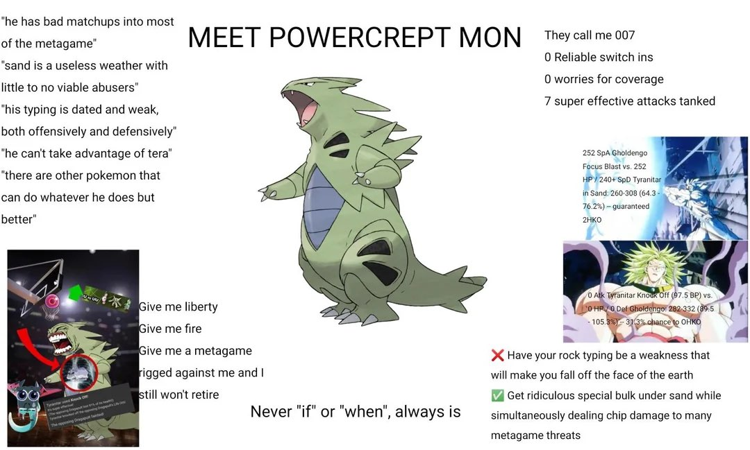 >>58906384Chansey/Blissey are up there too. Unless there's a major rework to the formula, they'll always be viable just by virtue of hard countering half the pokedex.