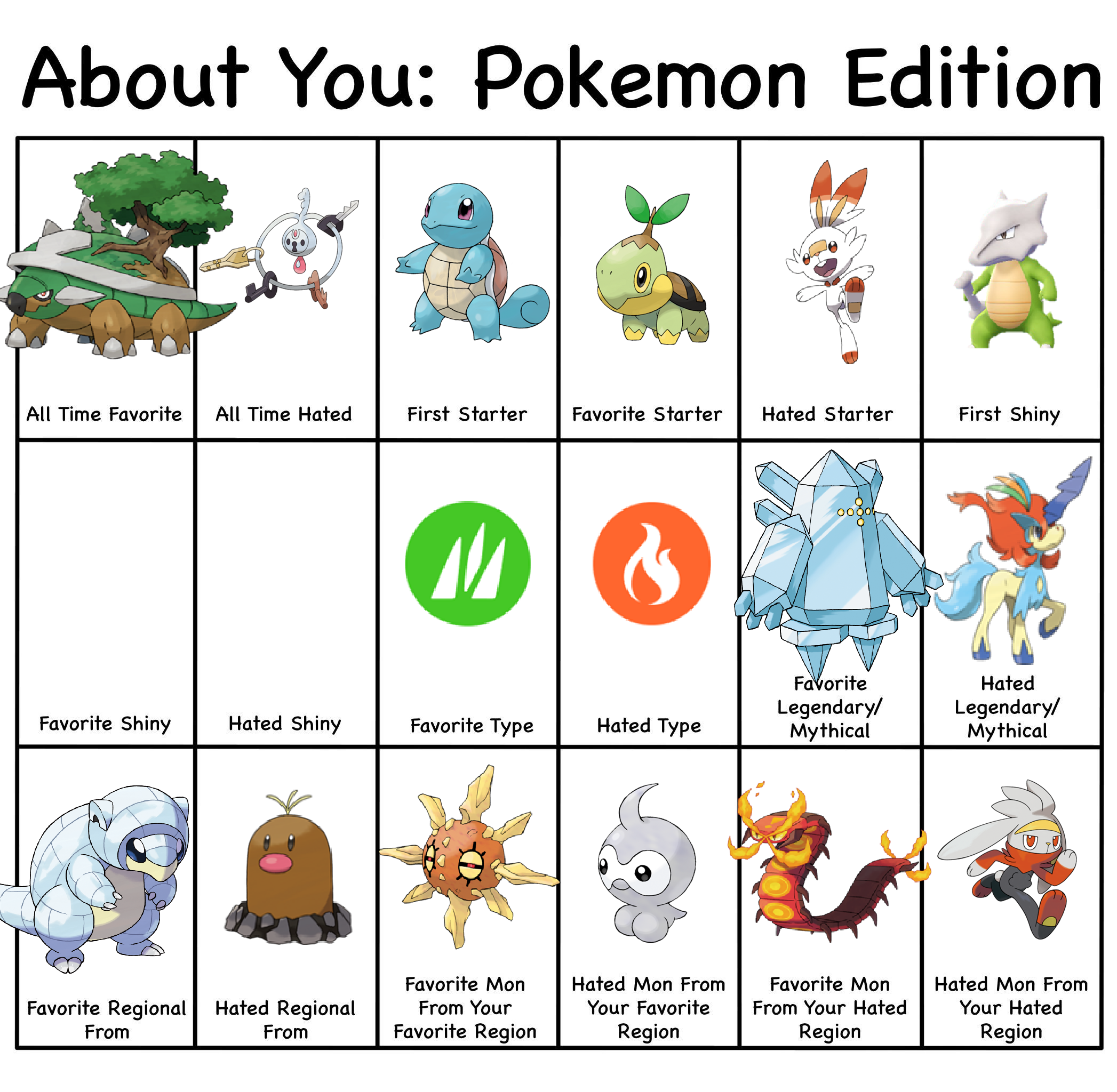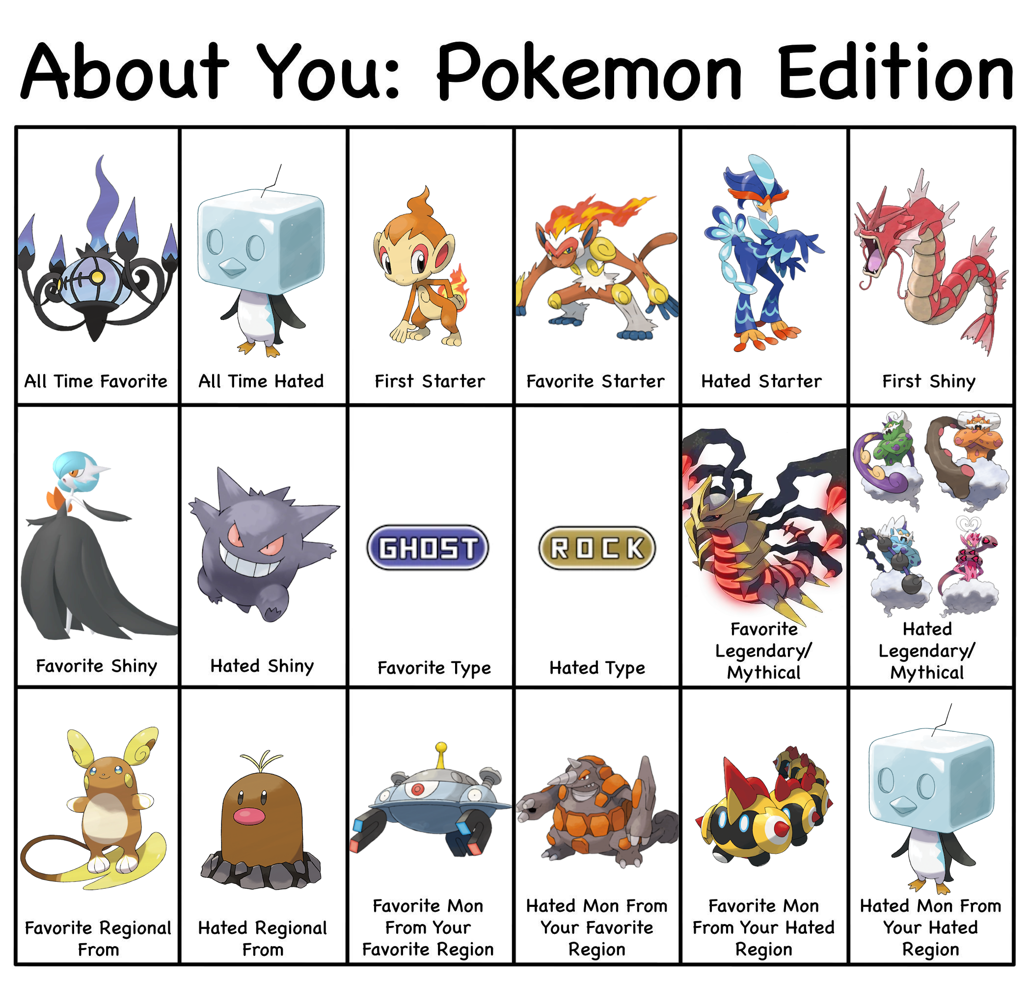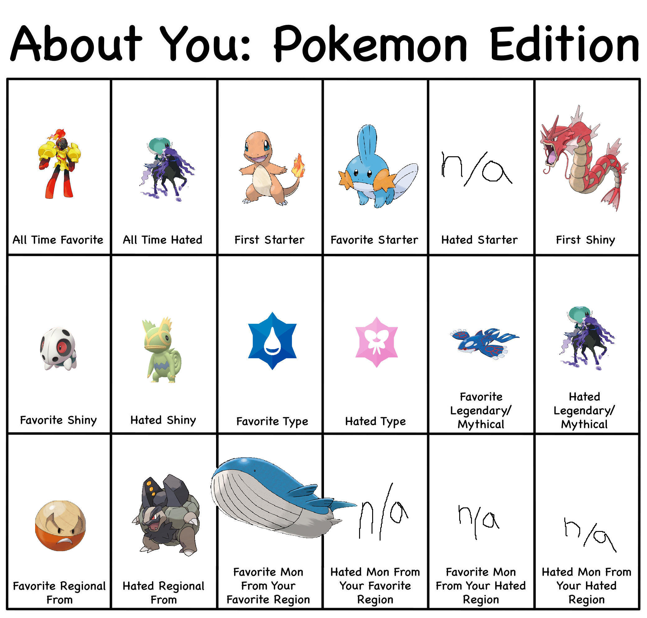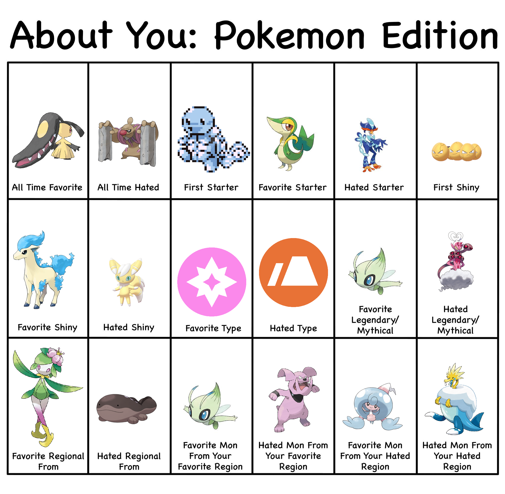 >>58909513It's actually 8/18>All time hated>Hated starter>Hated Shiny>Hated type>Hated Legendary/Mythical>Hated regional>Hated Mon from favorite region>Hated mon from hated regionI wouldn't call favorite mon from hated region as a hate. It's something you like and it'd be counting hated region twice