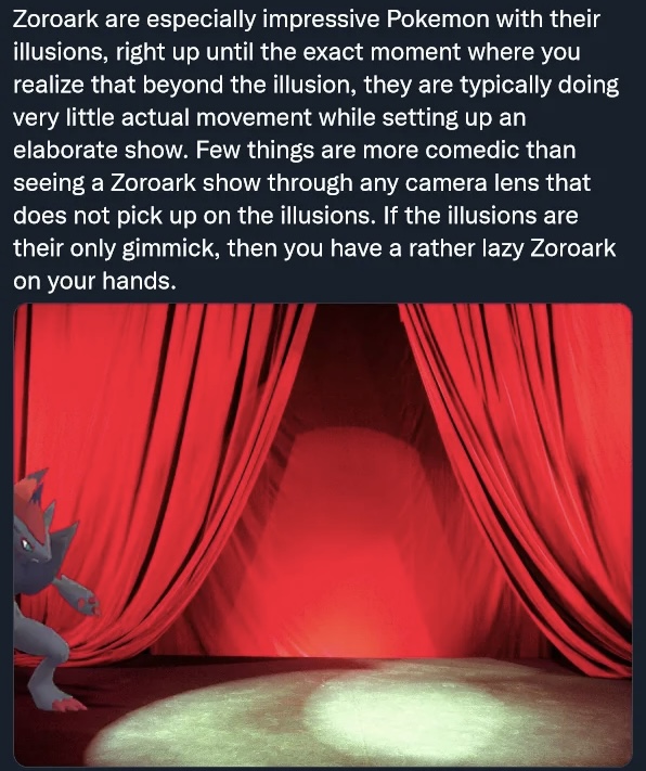 >>58931364Several new stories were added, several stories continued, and the biggest Lore Update™ is the prevalence of the in-universe pseudoscientific PIPS, or Pokemon Induced Psychosis Syndrome, as a catch-all description of the Pokemon instincts that affect people, those who remember things that never happened to them as a Pokemon, and things they've forgotten about who they were as a human.