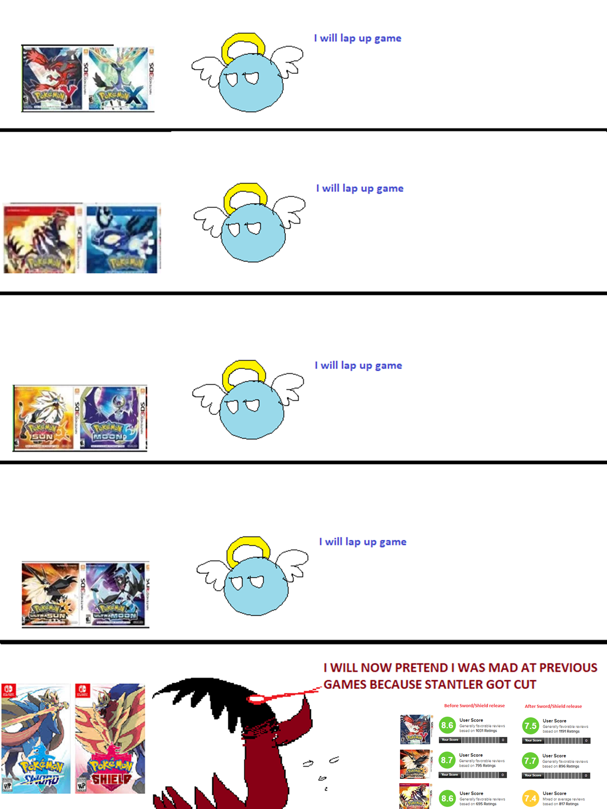 >gamefreak caved in to Stantlerfags