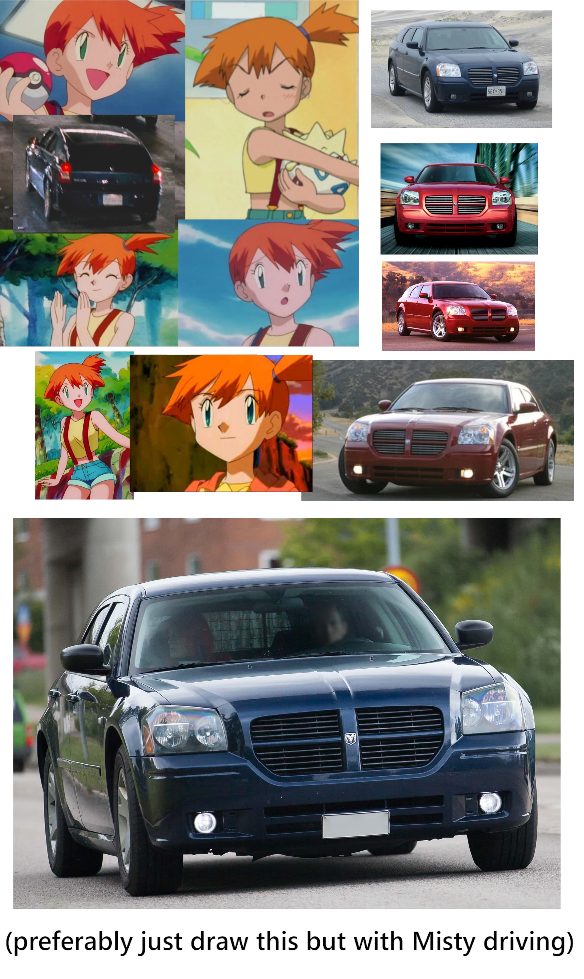 >>58928185>>58928641If anyone wants to draw Misty from Pokemon driving the same car for some reason, here you go (references):