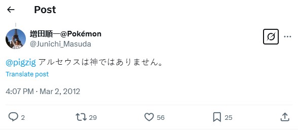 >>58928576>>Introduce the character who made the whole of existence of the verse and is able to do anythingThe thing is, we have interviews from the DP developers where they mention not to take any of the Sinnoh myths as fact. We have Masuda on Twitter saying Arceus isn't a god. Cynthia in Platinum's post-game implies that the myths are also made up, which we know from the Teraleak was always meant to be the intent as far back as the initial script for Cyrus. We also know from the same leaks that the main directors like Masuda and Ohmori all still consider Tajiri's initial lore to still be canon, to this day. That Pokémon are "aliens" to this reality, and that the pokemon world was something closer to mundane earth initially. The fact that no real writer for pokemon's games and lore genuinely considers Arceus to be the world's creator beyond it being npc mythology is telling on how seriously it should be considered in power scaling debates, to say nothing of whatever garbage it jobs to in the spinoffs like meteors/rope/negativity.