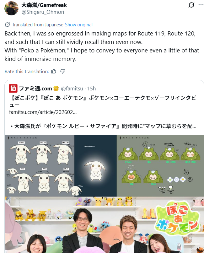 Ohmori casually dropping that he designed the best classic Pokemon route.