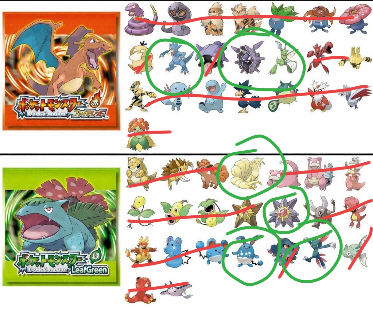 Wow, LG's lineup is shockingly bad. FR has the better exclusive in every pair except Slowpoke, Sneasel, and Octillery.