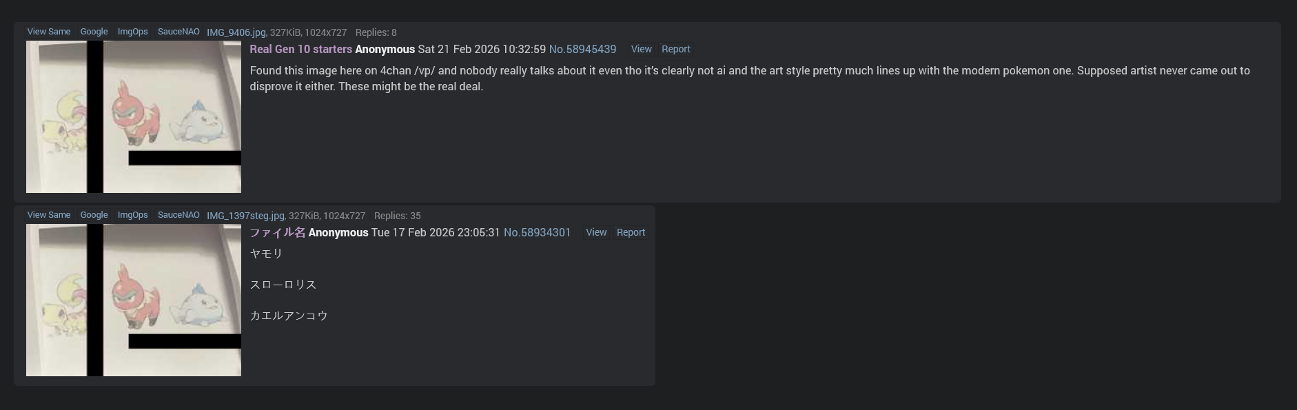 Only one or neither of these sets can be real and I'm leaning more toward the ones that don't look like AI hallucinations>expecting Sugimori art this early when Z-A took weeks to get his traces of the 3D models