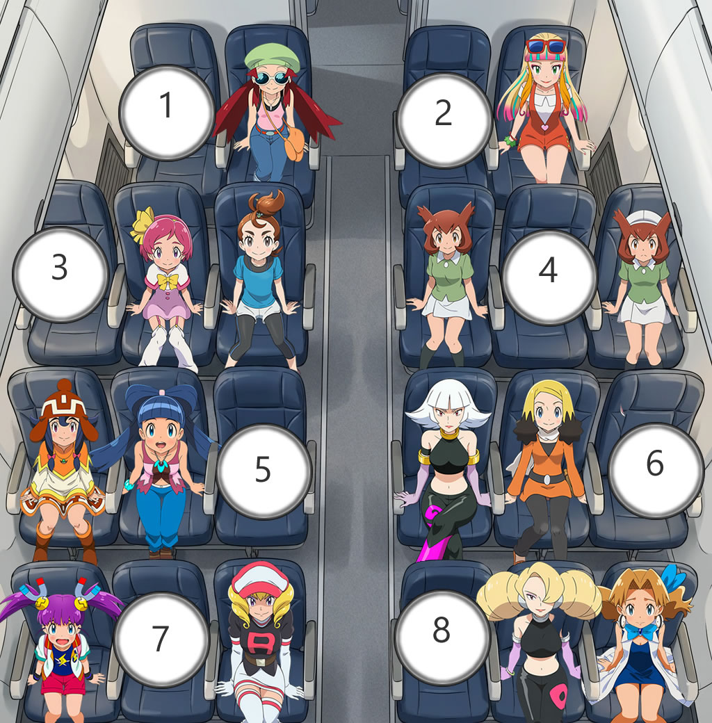 Good news! You’re on a flight full of Pokegirls. Bad(?) news: they’re all ones from movies and specials. Choose your seat.