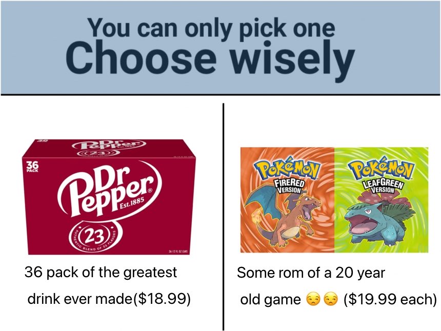 If i wanted to play those games i couldve been already playing it. In fact i downloaded the game just to remind myself how easy it is and loaded it up. Liked the music. But then immediately turned it off before choosing the first starter because i didnt have any interest in playing it before when ive always had free access to it and dont have interest now just because nintendo decided to make a quick buck off of retards with it.