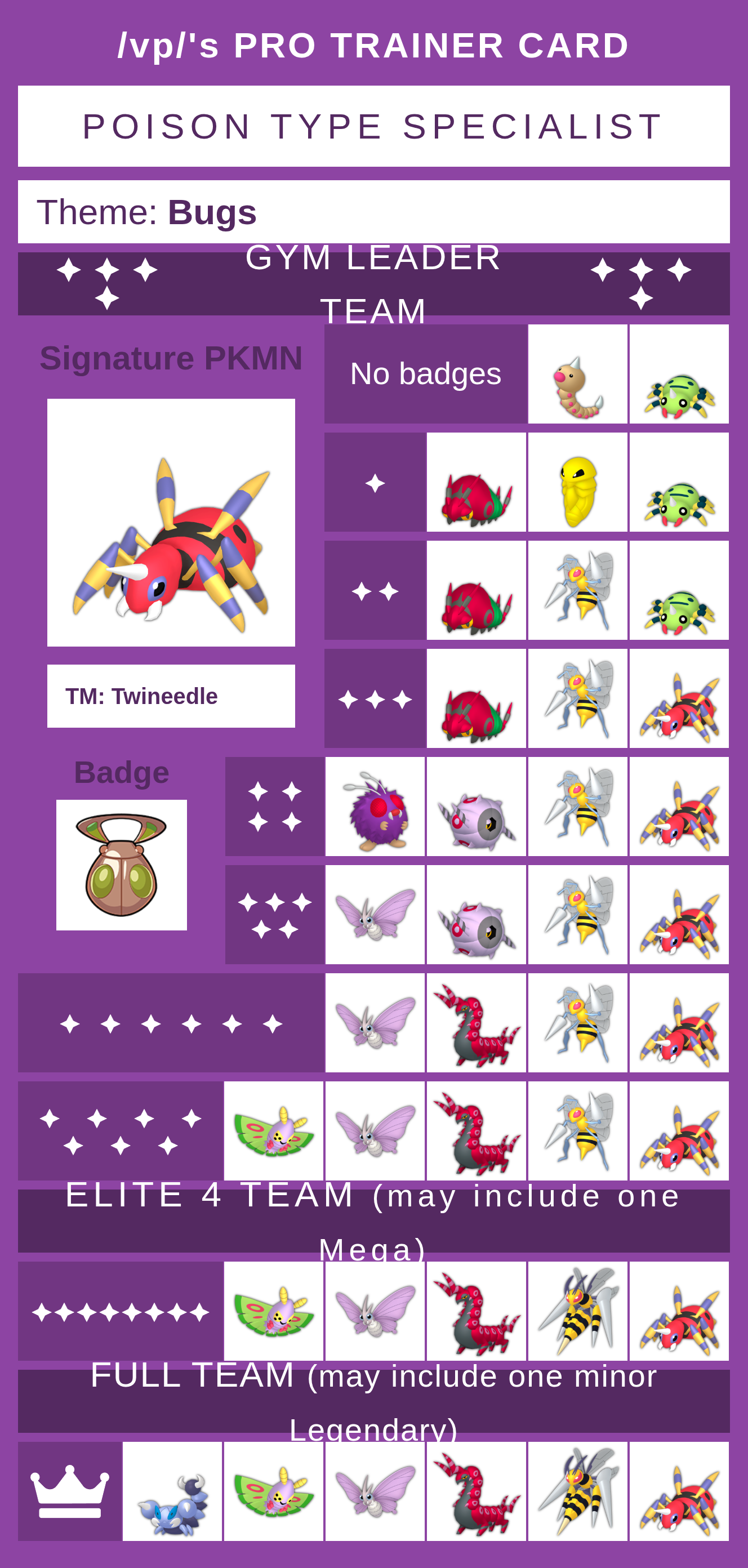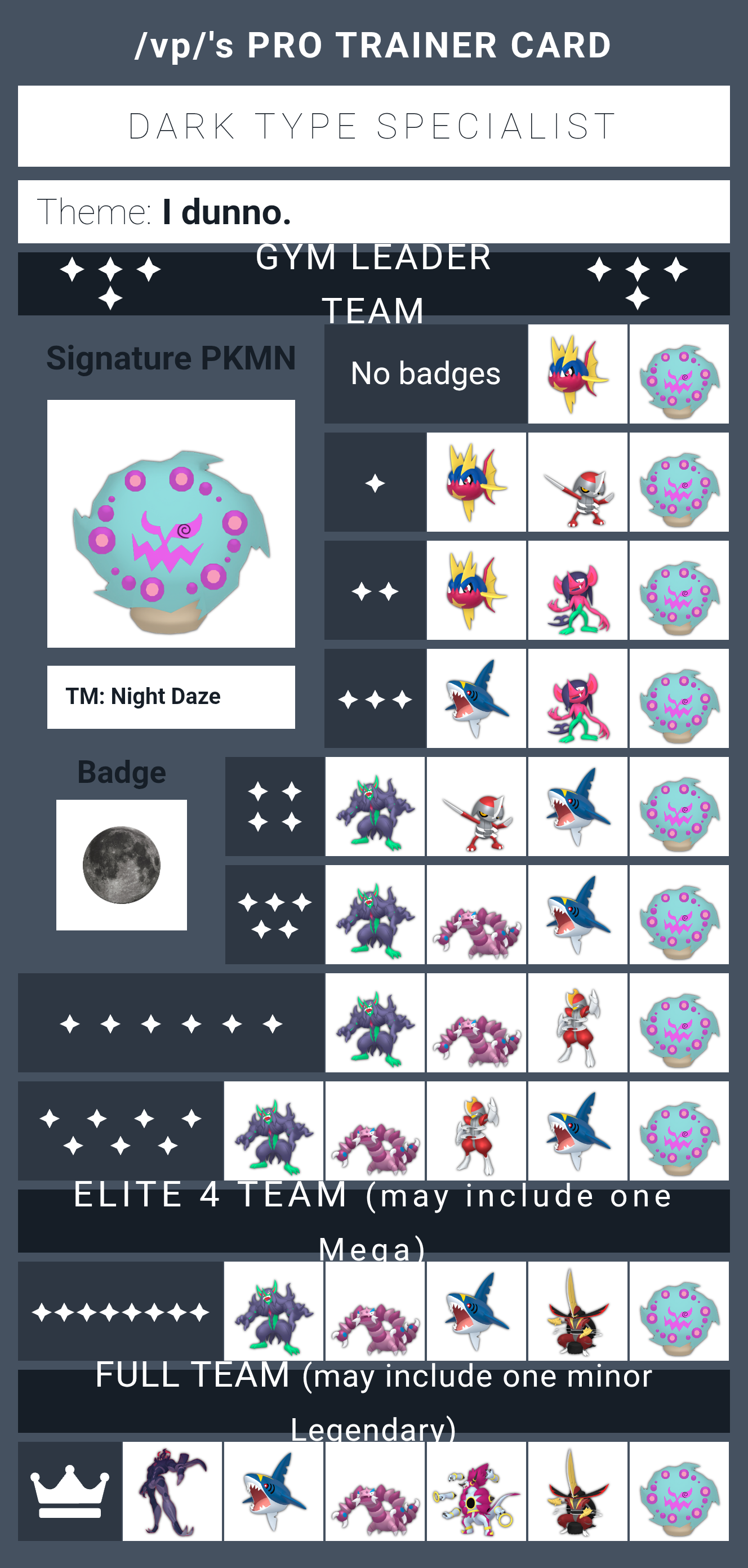 I like these threadsI kinda wanna mkae these for established gym leaders once I get the motivation togethersomeone made a github for these but it hasn't been touched in about a year by the look of thingshttps://crobat4.github.io/vp-pro-trainer-card/