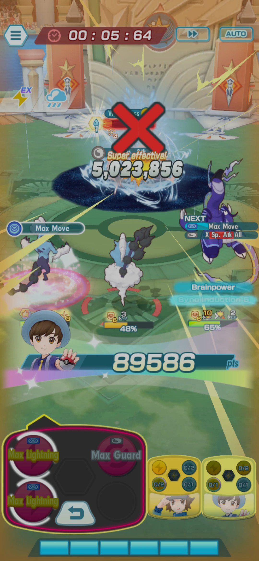 Campfirebros, it's the last day, unless you have super awakened gorillion damage units please copy the same stall teams and stack potent toxin/scorcher and pokey trap units that will end giving you more or less 45,000 points with 3 battles using x1 ticket on those stagea that would give you less than 40,000 with x3 tickets.Use those Bertha, Kabu (Scorcher + Pokey), BP Erika (Pokey 2 + Pokey 1), Wallace (Pokey 5), SS Leaf (Toxin 2), U Selene (Toxin 2), etc.Just use Bertha's Sand after the the mon on the right uses its attack or right after the boss' second action. Open with Sneaky Pebbles.You can test your DPS and see how it does, if it's below 40K just go for stall, Kabu's Max Move traps all on the start and he burns after being targeted else go for 2/5 Leaf's Razor Leaf poison and Toxin 2 chance on first turn, 2/5 Ultra Selene does the same with Acid.