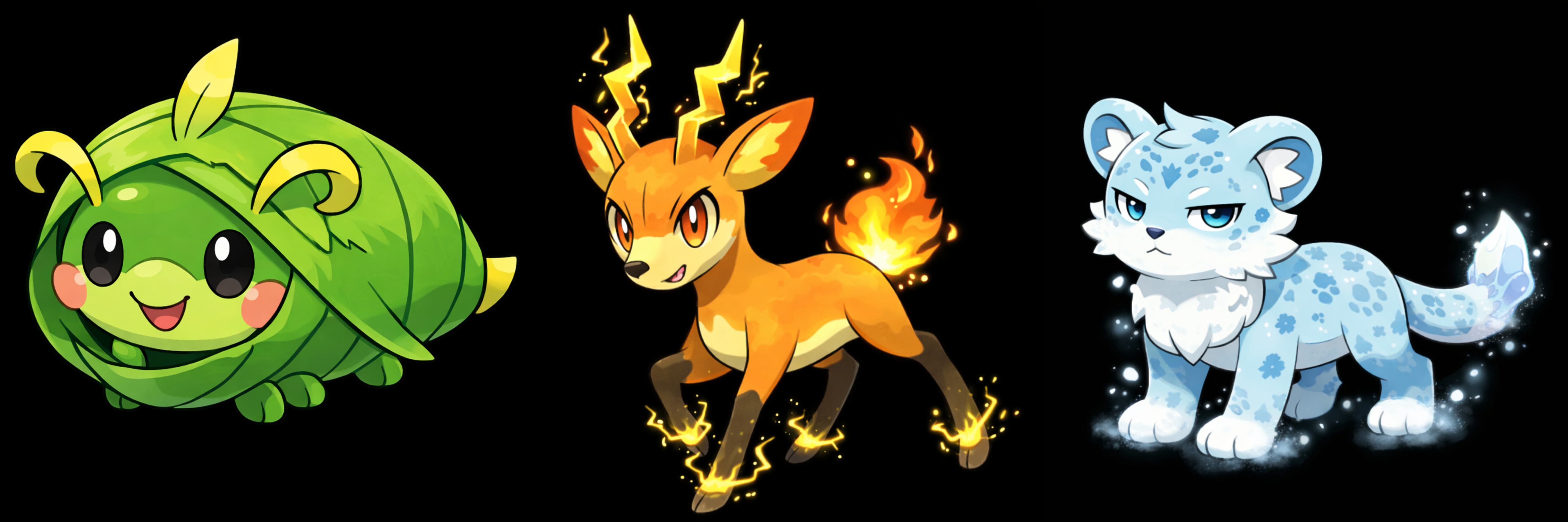 >>58963997Fakemons don't need to copy GF's design philosophy or pretend to be real. Also these have clear grass/fire/water elements so your argument is obsolete.