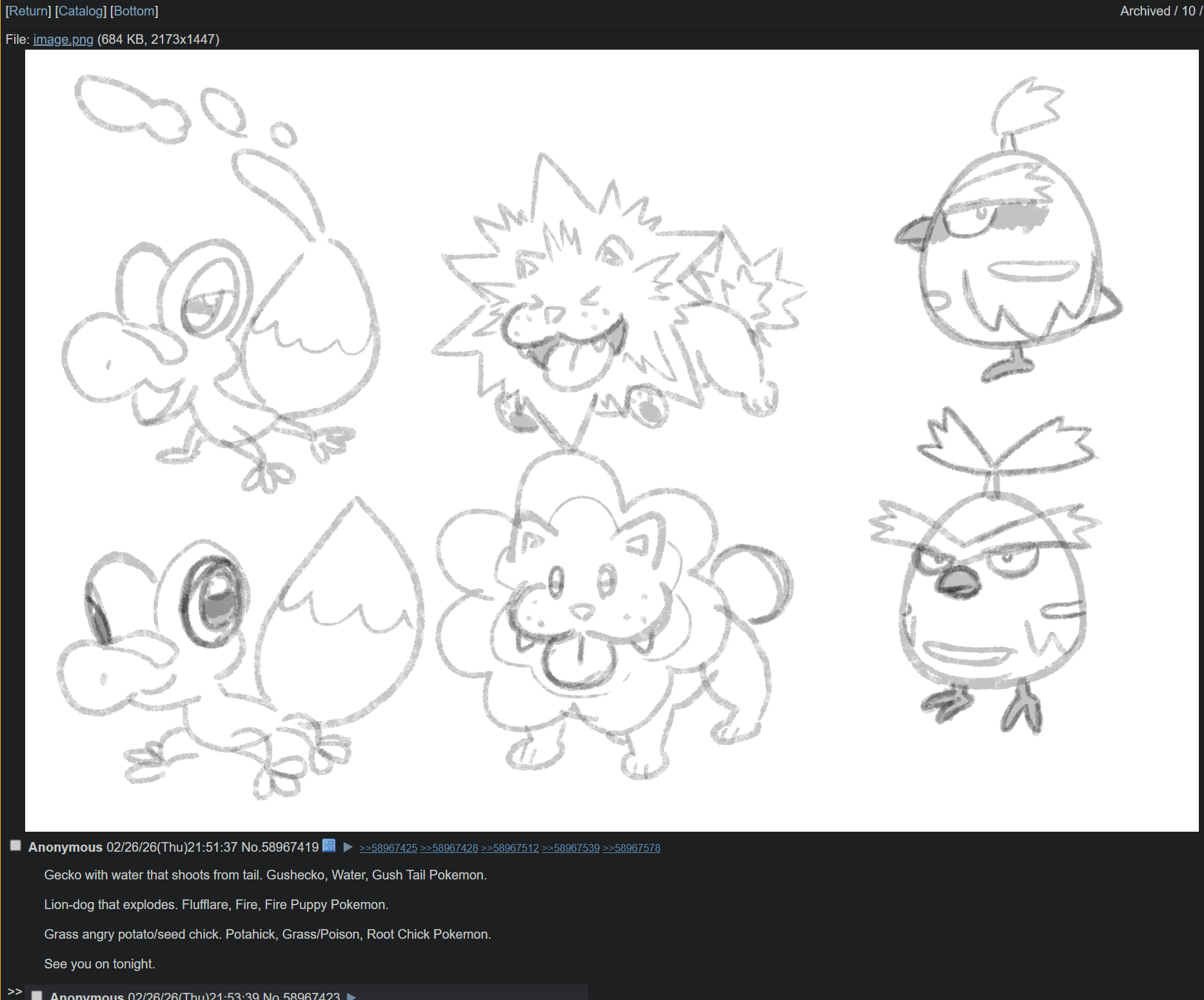 >>58985011>We've known for almost 2 weeks that the starters were a grass bird, fire dog & water lizardfrom where