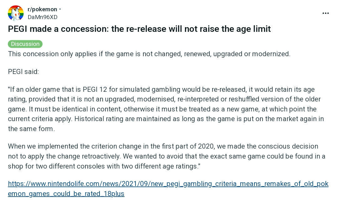 >>58980608Thank you bro. But, if the Game Corner slot machine minigame is still in the European eShop version, then WHY did the PEGI change?