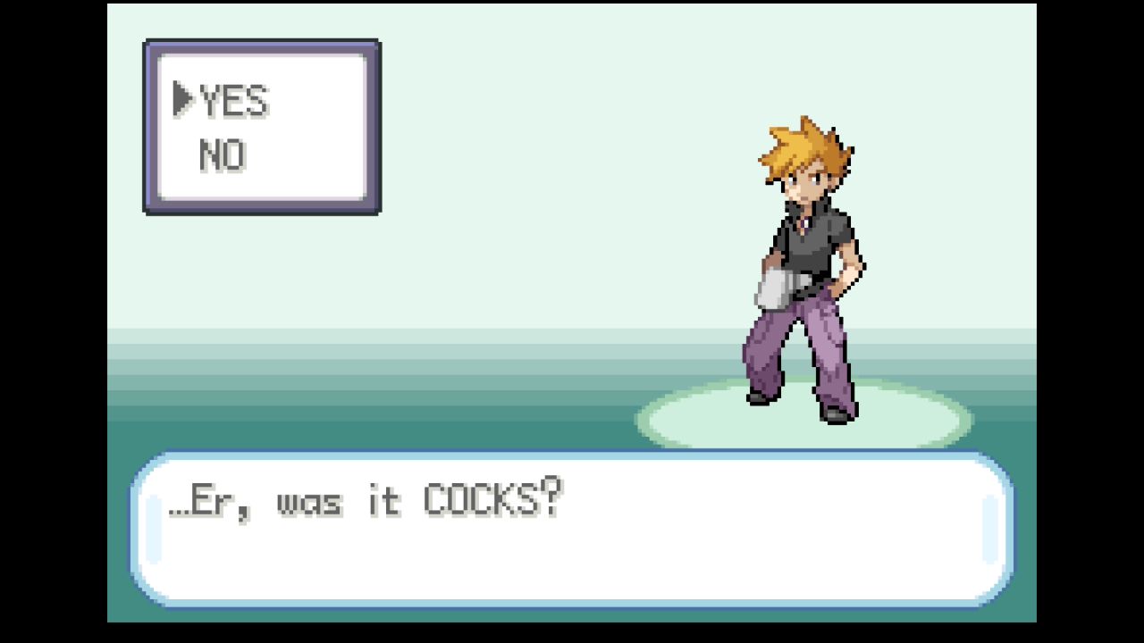 >>58977038It's a very basic filter that applies to any text entry. It filters out DICKS but it let me name my rival COCKS. The game doesn't tell you it rejects the name outright, it just acts like you left the name entry screen blank. If you're on the Player/Rival name entry screen, it suggests one of the default names. If you're on the Pokemon Nickname screen, it keeps the name as the species name.