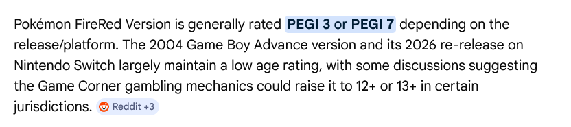 >>58977723This is about PEGI. ESRB might’ve raised the rating, but the PEGI rating stayed the same