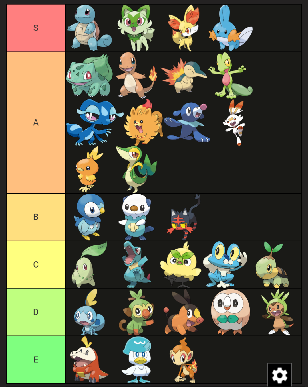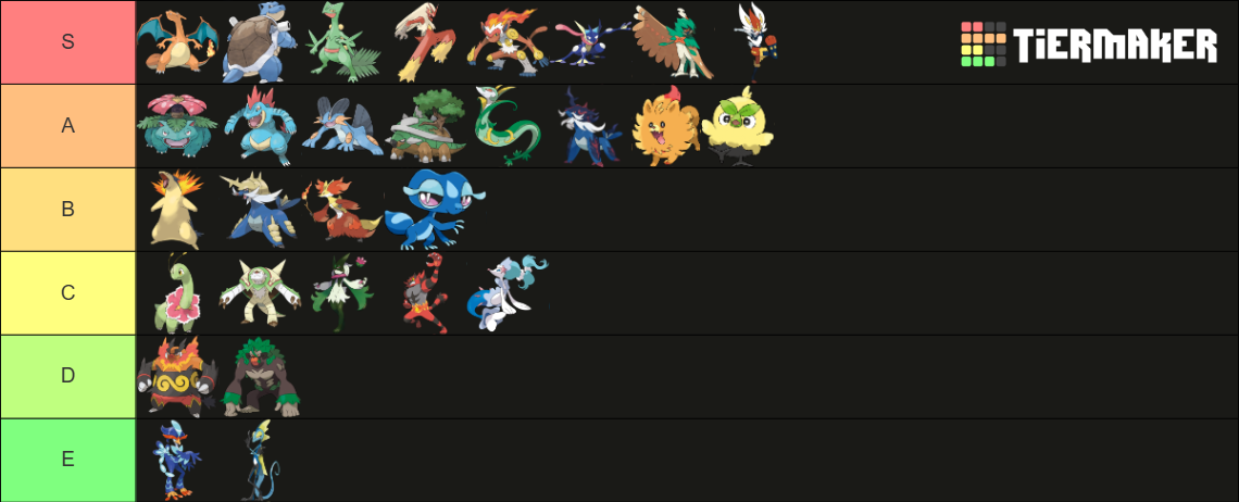 Now that the dust has settled, post 'em.https://tiermaker.com/create/pokmon-starter2023-1437593