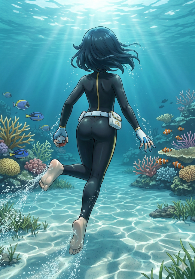 >>58986121>she's still wearing a stupid shirt and pants over itI fucking love that clothes over a wetsuit is a legitimate fashion trend in Pokemon world. It would be such a rare fetish otherwise.