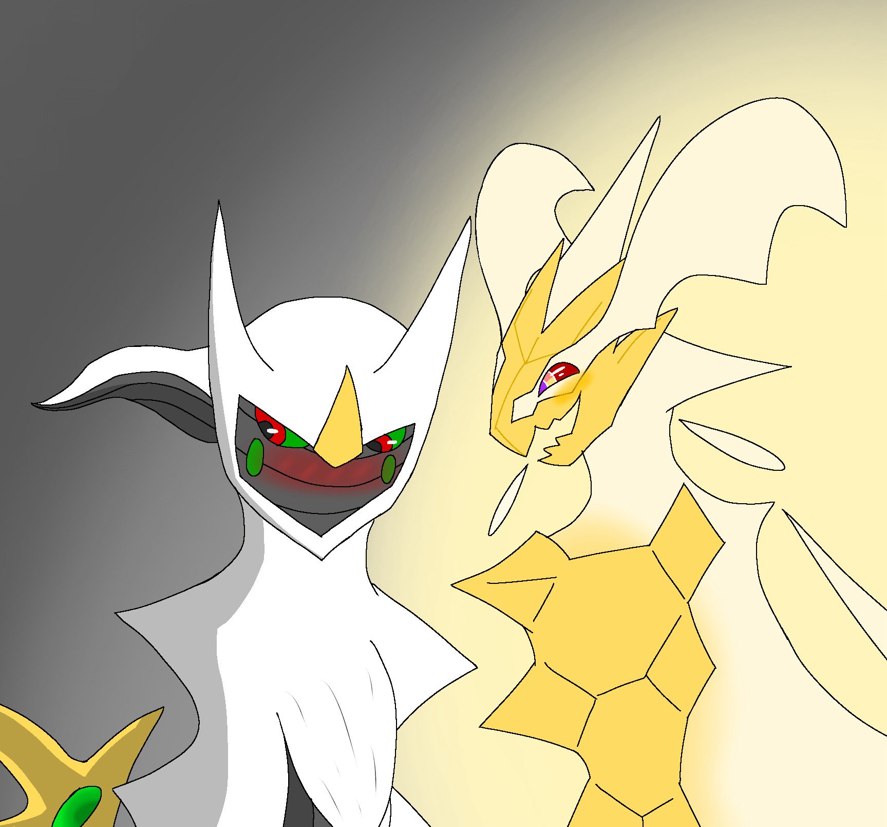 Arceus split himself, ensuring his demise should he turn on his own creations, and gifted his abilities to be everywhere and be anywhere to their children. Palkia and Dialga now held his spatial and temporal might. The third would ensure the prior two’s balance — until Giratina’s violent betrayal shook the heavens, and saw him banished. They knew sorrow, and loss, for the first time.