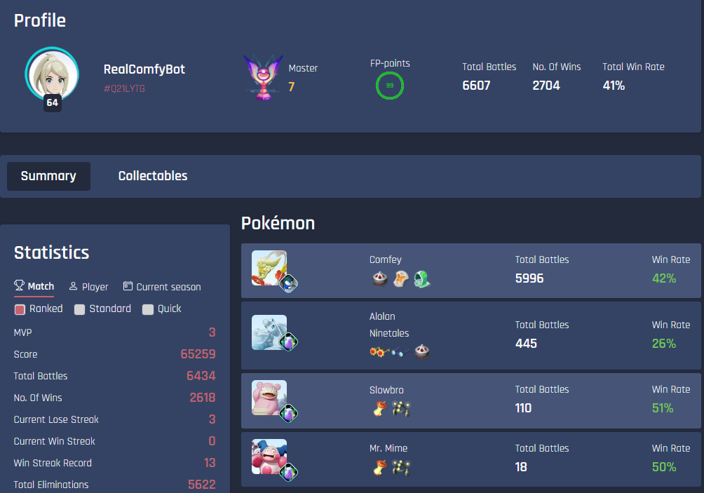 >>58989014It's in the tab to the right of the screen, above Battle, but it hasn't once been updated since launch so if you already got the Garchomp and Talonflame from there then lolAlso not a jab at you but Ranked is a joke to climb, as proven by what >>58988592 said. You can be a top 100 player but you'll still get some guy's scripted bot account like this on your team and it still has a higher winrate than some of the real players I get in my teams