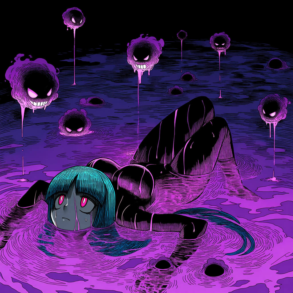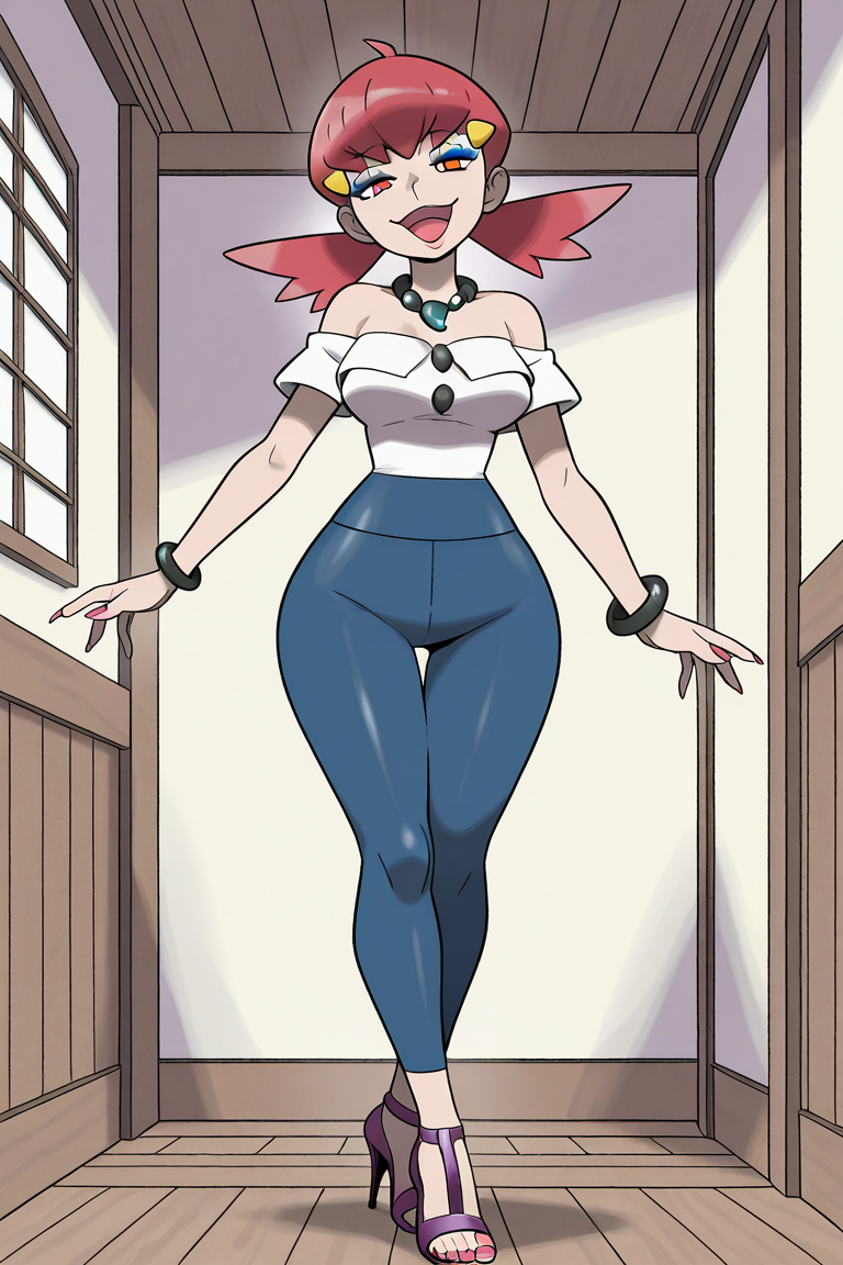 >>58994478Hey there, I nodded off for quite a while>LoRAhttps://civitai.com/models/1788947?modelVersionId=2024486https://civitai.com/models/1521979?modelVersionId=1730884https://civitai.com/models/1621617?modelVersionId=1835248https://civitai.com/models/1107767?modelVersionId=1617210https://civitai.com/models/1515981?modelVersionId=1715056https://civitai.com/models/371272?modelVersionId=1071893https://civitai.com/models/2060000?modelVersionId=2331189https://civitai.com/models/184317?modelVersionId=1616129>XYfull body, official art, watercolor \(medium\):0.46, sugimori, jaggy lines:0.48, watercolor background, best quality, absurdres, female focus, parody, 1girl, solo, jewelry, off-shoulder shirt, collarbone, purple magatama necklace, medium breasts, big hair:1.3, sleeveless, (hex maniac (pokemon)|pegbundy:0.5), purple eyes, @ @,hex maniac (pokemon), long hair, ahoge, purple hairband, purple eyes, ,necklace, open mouth, triangle walking towards viewer ,long hair, no outline dark-purple lipstick, bracelet, bare shoulders, smile, off-shoulder shirt, dark-purple top, spider-web print top, dark-purple bangle, curly hair, toes, dark purple toenails, wide hips:0.52, thick thighs:0.48, (purple footwear|peep toe heels, stiletto heels), tight pants rolled up to knees, long fingernails, black nail polish, head tilt, heavy makeup, pink eyeshadow, half-closed eyes, eyebags, seductive gaze, indoors, darkened atmosphere, dark brown wooden walls, red painted spaces on walls, old house, bags under eyes, demented,