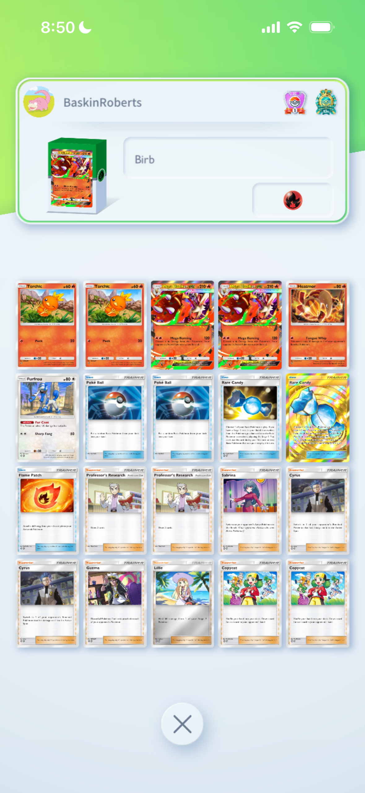 Holy fucking shit I am so fucking tired of not getting Torchic in my first three turns. Im just going to remove Heatmor and Furfrou and replace them with Torchics. Holy shit I hope whoever recommended this pile of shit deck watches their cat die slowly