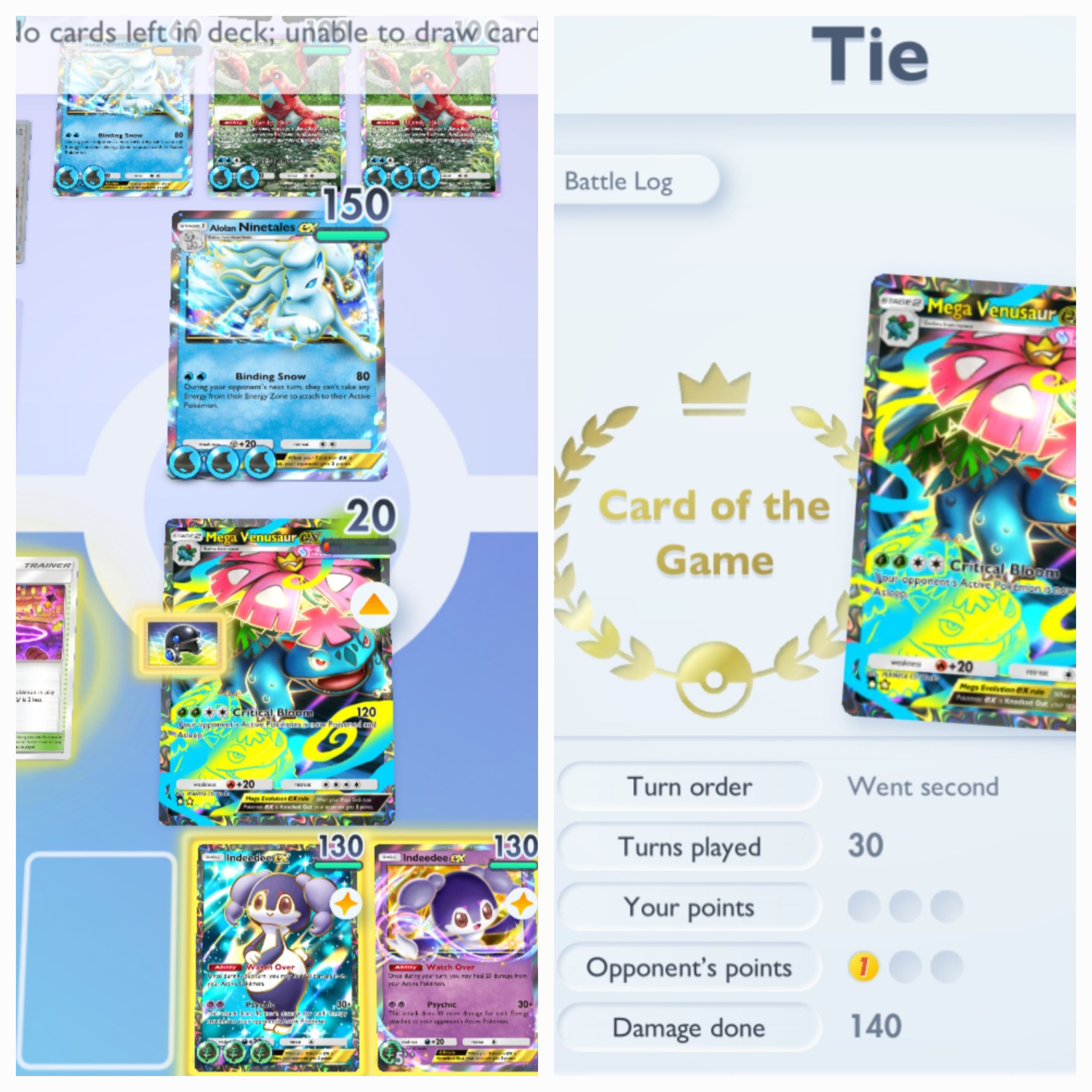 KekHad to tank with a ivy heavy helm at the front to build up my bench venu. Even with the energy built up they just flipped 4 heads with grunt.Managed to stall 30 turns because they played their stadium card too early and I erased it with my stadium