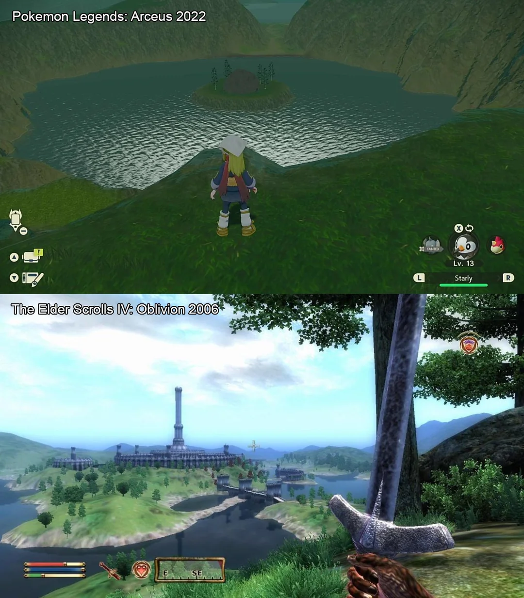 A first playthrough will only account for about 10% of ones experience in a game. In a pokemon game especially the 20 hour campaign is a drop in the bucket next to the 200 hours of vibing in the world, achieving goals, training a team, catching pokemon etc. With an open world game, once you've been somewhere once, it's "checked off", its done, the content is essentially removed from the game since you will just bypass it to what has been determined to be the most important destination in future travels, in traditional design its always there as part of the world structure and you will have to interact with it no matter what, so it creates the sense that the world has more content, it's never fully "checked off".