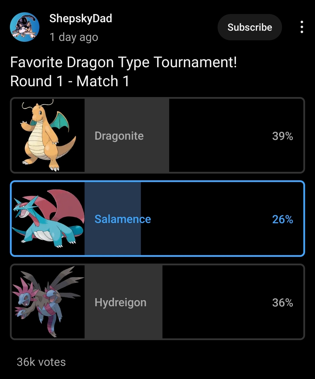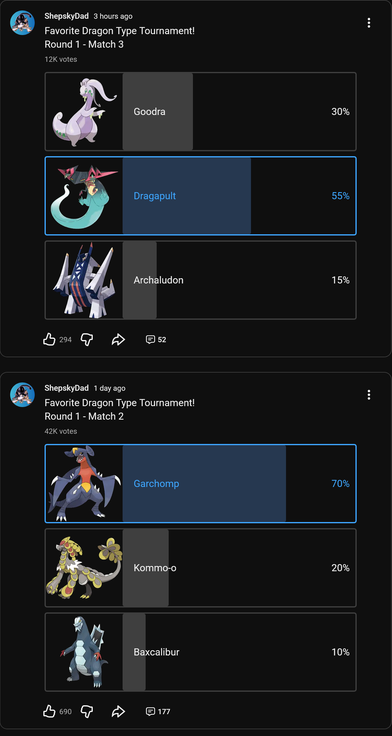 >>59023527>I'm pretty sure it's just two trolls spamming the anti-Salamence posts.They're going to have a field day if Tyrantrum shows up in the polls and loses because of the "le boring cartoon animal XDDDDDD" that the Sharty pushes on here.