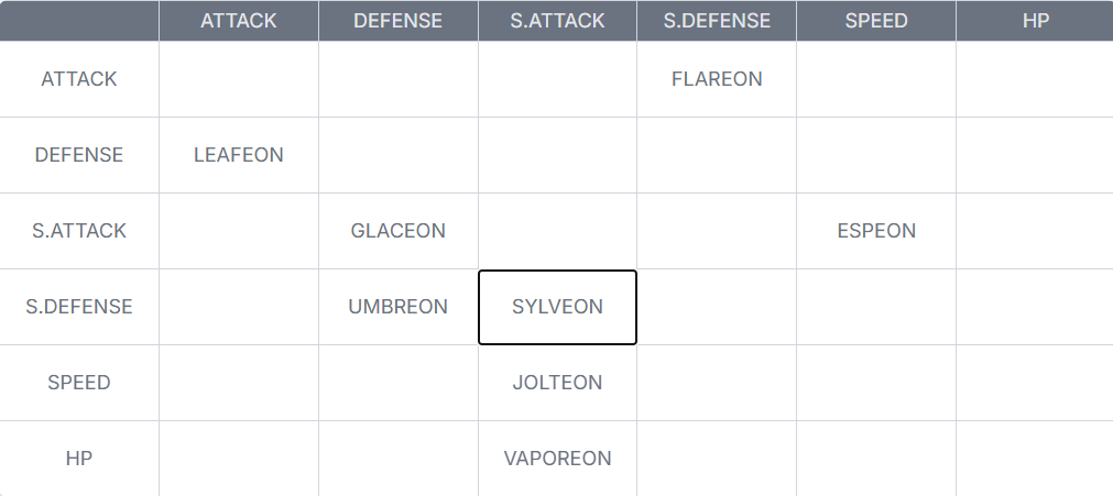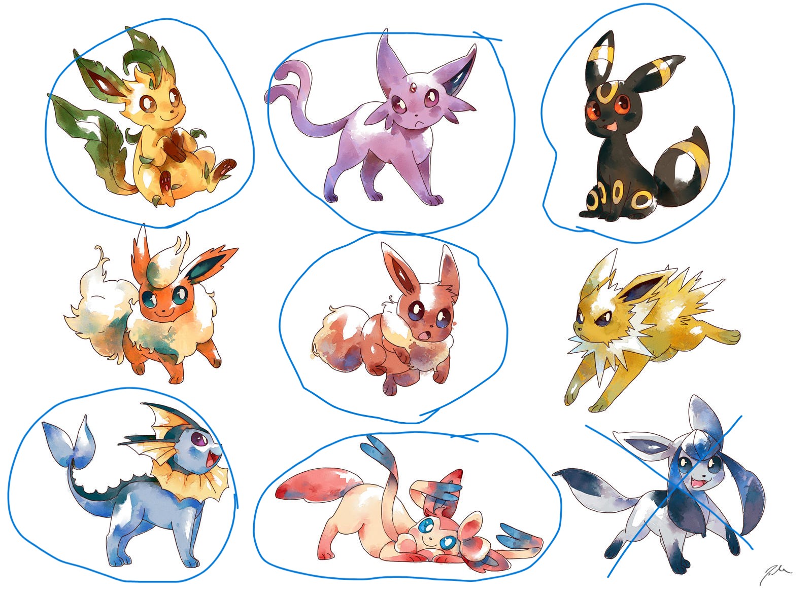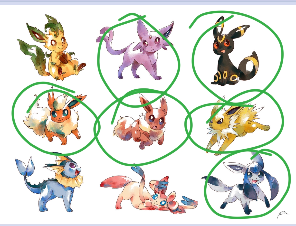 Glaceon>Eevee>Espeon>Umbreon>Jolteon>Sylveon>