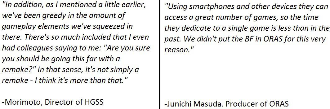I read the interview and it genuinely seemed like ORAS were a work of inspired passion. I am shocked that it seems to get hated on just because it lacks battle frontier, which hardly anyone even experienced. What it does have is way way better by comparison. What's your excuse for not loving these remakes?