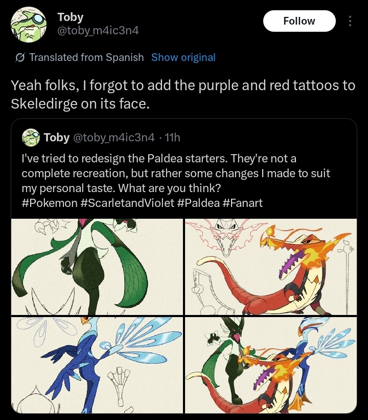 >>59026643I like how this looks but getting rid of the day of the dead theme is lame. The idea of a skeleton croc is cool as fuck its just that gamefreak executed it poorly. Instead of abandoning the theme entirely why not better reflect the undead aspects of Skeledirges design