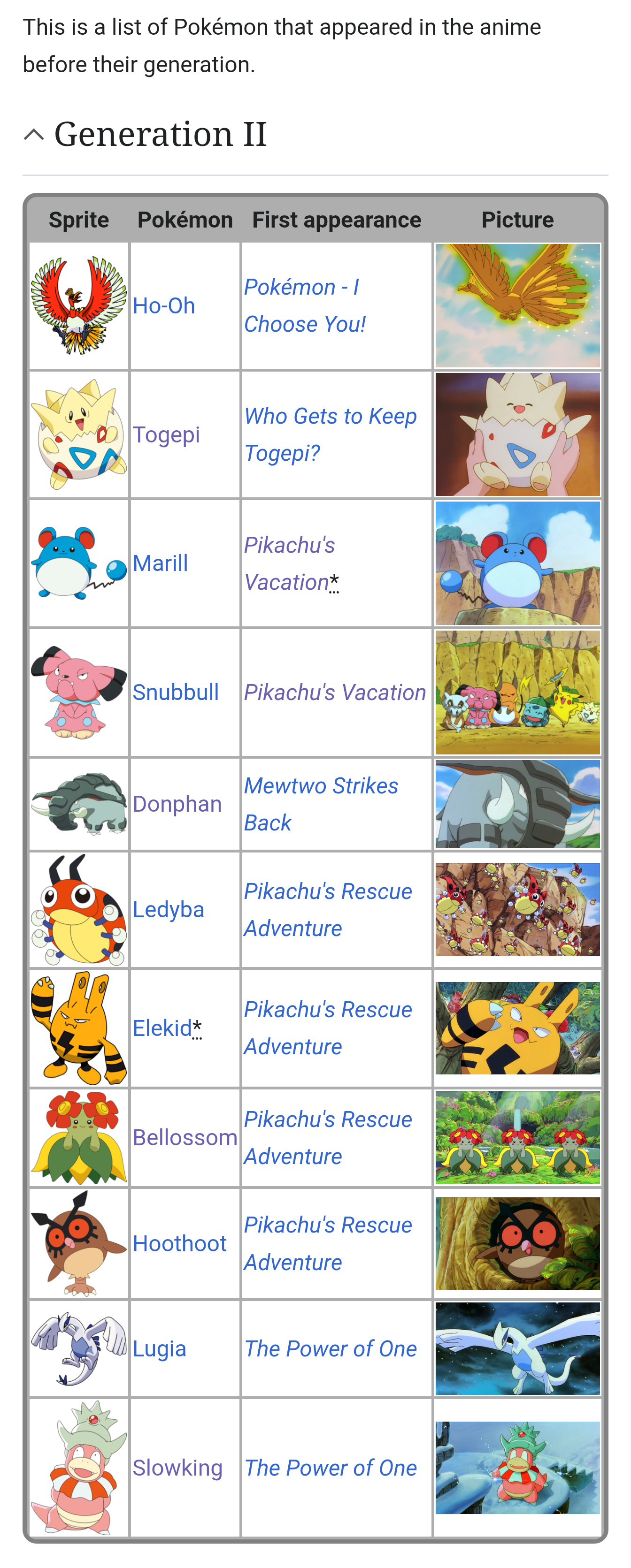 >>59028662I'd argue that gen 2 is still somewhat iconic with all the Pokémon we saw in the show and first three movies. Outside from that not so much. For example Togepi, Ho-oh, Lugia, Entei and Unown are pretty iconic.