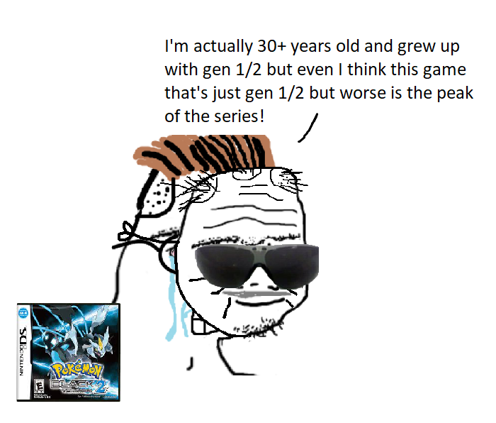 >>59028863Gen V is mostly just bootlegs of gen I.>Sawk/throh = Hitmons>roggenrolla line = geodude line>Woobat line = zubat line>Pidove line = pidgey line>Basculin = Magikarp>Seismitoad line = Poliwrath lineAnd so on and so forth.Mind you, that doesn't mean I (someone who played Blue version as my first game back in the 90s) think gen 1 is the best dex
