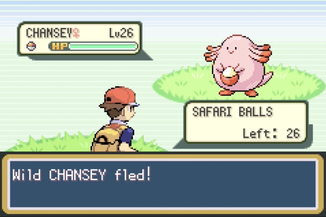 Been playing Fire Red on Switch. I like to play with mons I like or ones that are considered "bad" so I don't use the starter or anything that would make the game too easy just to spice things up since I've played these games so many times. Everything was going pretty smoothly up until I got the elite four and just couldn't do a damn thing, can't even beat Lorelei. Grinding my whole party to a level where I can just bruteforce my way through was taking too long and out of principle I refuse to budge on who's on my team, so I had the brilliant idea to try and get a lucky egg off Chansey to try and help speed things up. I have been in the Safari Zone for 25 hours now and have only caught 8 Chanseys. I ran the numbers taking into account the spawn, catch and flee rates and it's around 1 in 4,900. I'm in too deep and now it's just a personal challenge to find this fucking thing.What's the most insane thing you guys have done in these games?