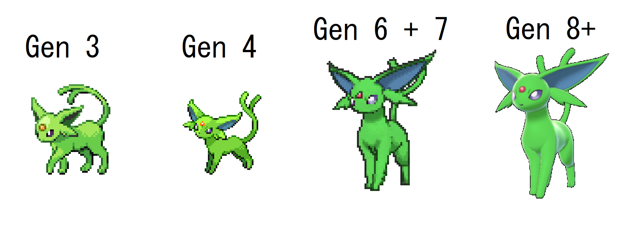 I love Espeon and used to despise the shiny but nowadays I like it. Still prefer the regular and sure it kinda sucks next to Umbreon's amazing shiny, but the green is pretty cute in its own way.