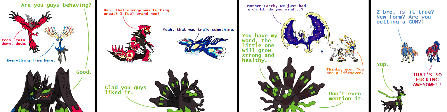 >>59051557It is kind of interesting that Necrozma has to mega-evolve (but they don’t call it that) to use its signature Z move and Zygarde mega-evolving enables it to use its signature Z move (but they don’t call it that).