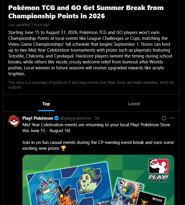 >mid year celebration is all of june, july, and august pokemon literally telling us to touch grassI guess I don't need to really play this shitty post-rotation format at all given that I already have ace trainer and chaos rising and the summer set will be legal by the time things start back up