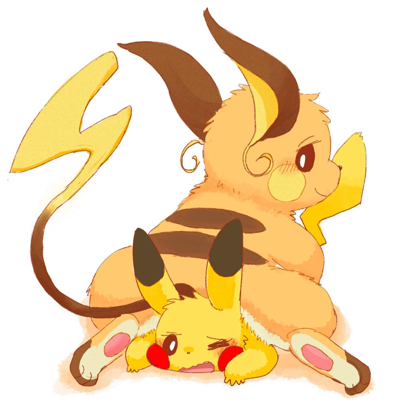 When I was in middle school, some girls in my class punched themselves in the belly because they heard that was the most sensitive place to get hit. The skinny girls felt the pain, but one really fat girl punched herself in the belly multiple times and said “hey! this doesn’t hurt at all!” The skinny girls looked at each other and laughed while the fat girl was smiling unaware.Raichu is very fat, so it probably won’t feel much, just laugh from the sensation.