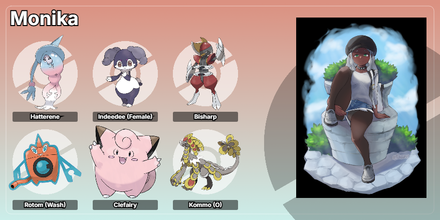 >post your ideal team you'd have if you were in the pokemon worldAs a FemaleFairy/PsychicPsychicFairyFemales only No penises allowed