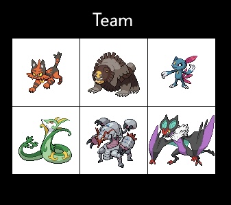 post your ideal team youd have if you were in the pokemon worldthere are various team planner sites, i just used this one from the favourites picker because it was the only one i could find with vivillon patterns: https://cajunavenger.github.io/