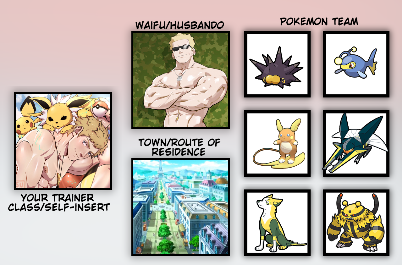 >>59063085Assuming I’d be an actual Pokemon trainer (plus whatever job I’d have considering most gym leaders also have regular jobs), it’d be this team. If I weren’t a proper trainer, it’d probably be just an Espeon, Lucario, and Vibrava.