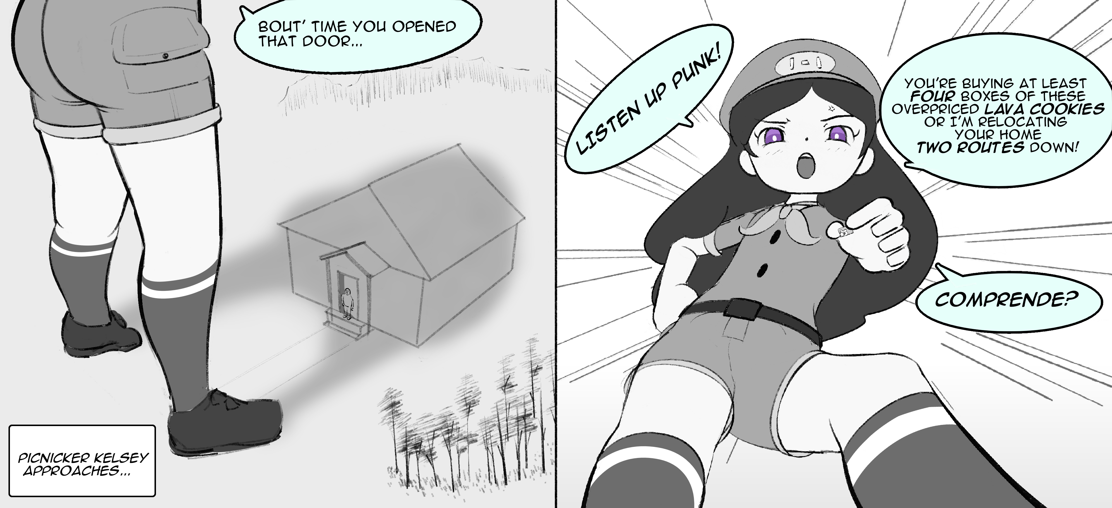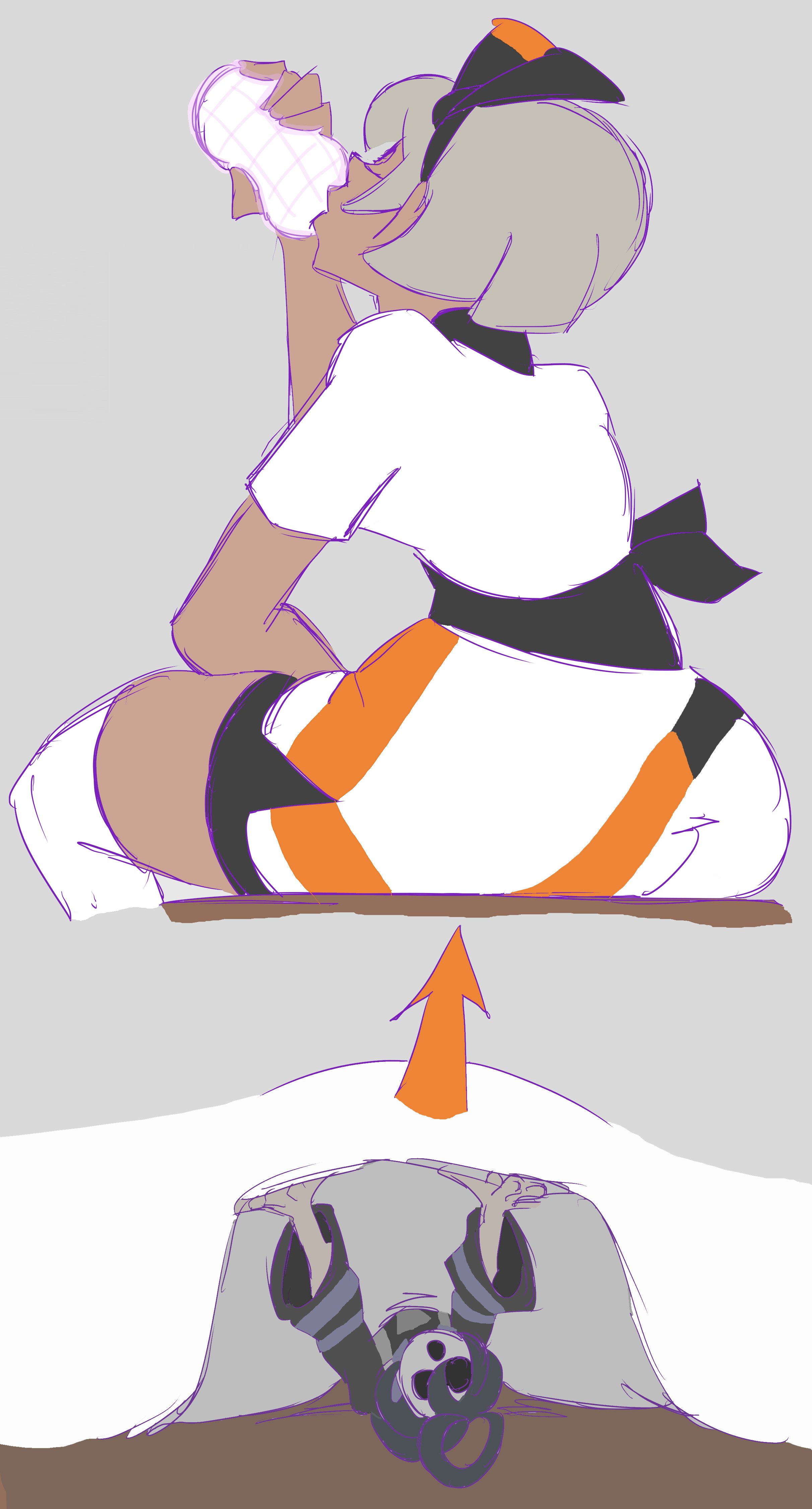 >>59091375Hex maniac wearing a Masters EX Punk Girl outfit completely unaware that there's a small male trainer watching her dress. Hex has a bit of a chubby muffin top and the trainer falls in her boobs, slips through, and lands on her stomach chub. Hex thinks the tights are stuffy and humid so she vents them a bit, and the male trainer falls into them and Hex starts getting more sweaty and turned on, the male trainer ultimately gets Womb Tombed in the Gushing Graveyard. Also for whatever reason Neco Arc is there as well and says BURUNYU that serves no point to the plot.