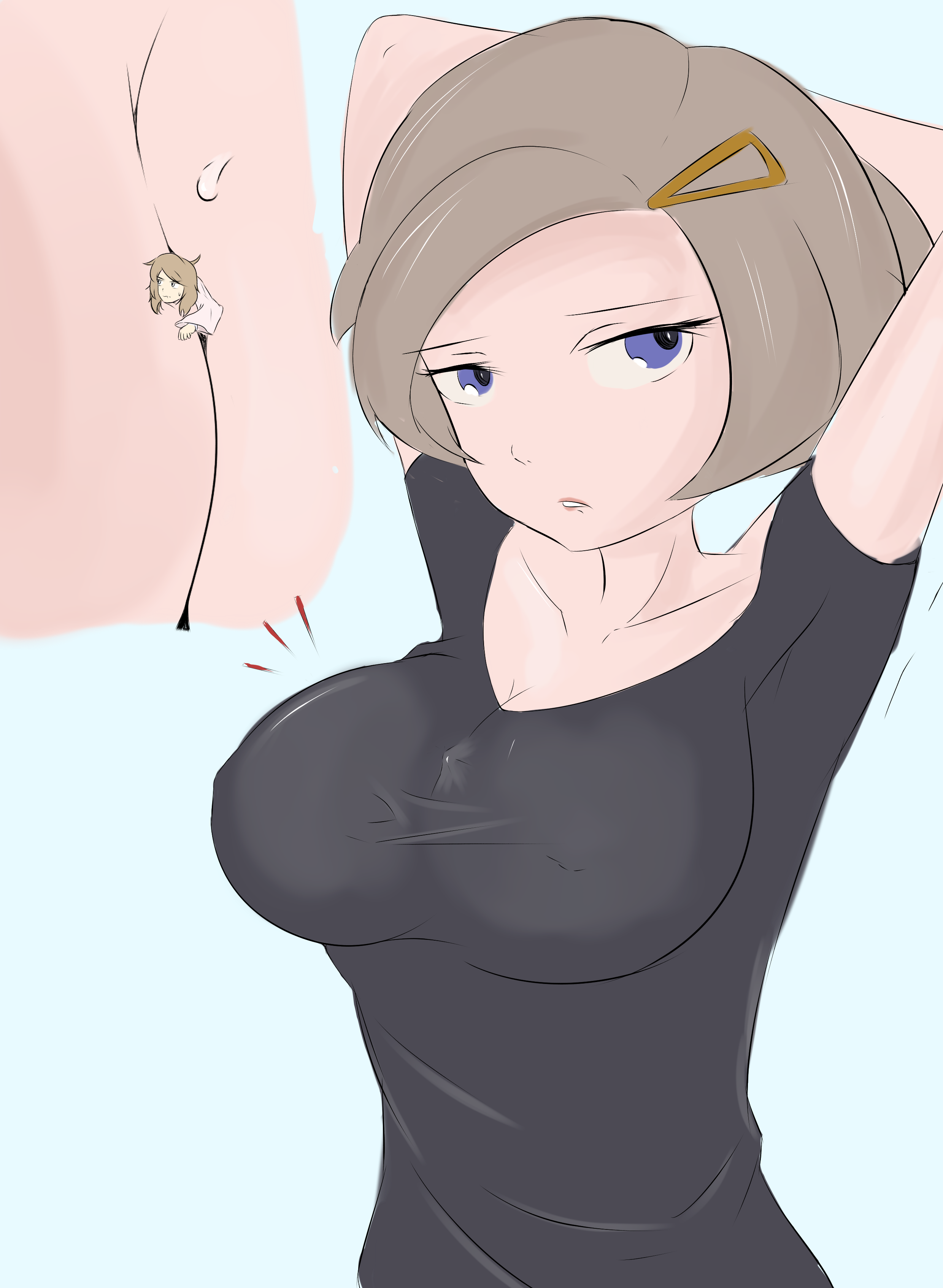 >>59096284>onslaught of inquisitive questions had Serena sweating bullets, which became a real problem for Calem stuck in her cleavage. As her boobs became wet it was harder for him to stop himself from slipping down between them>Serena continued to make up bullshit excuses, but feeling a tiny squirm around her chest didn’t help with keeping her composure>”I can’t believe that boy got lost in such a small town” Calem’s mom shook her head annoyed>”well, what’s small to you can be really big to someone else” awkwardly replied to Serena “besides, he’s been between mountains of pressure lately” she added trying to subtly press her breasts to stop him from falling down further>“I guess you’re right. It was nice talking to you Serena. Have fun doing your homework” Calem’s mom moved to hug her>as the milf’s tits collided with Srena’s chest the impact shot Calem out like from a cannon down into Serena’s panties, making her blush>”are you ok girl? You’re heated up like you have a fever?”>”yes Mrs. Calem. We’ve been studying a lot of anatomy lately and this is a completely normal reaction” Serena said biting her lip